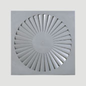 Tofisan TSDA-1 model helisel üflemeli tavan difüzörleri çok kısa mesafeler içerisinde oda havası ile homojen bir karışım sağlamak için kullanılır. 2.6 ila 4 metre arasındaki tavan yükseklikleri için ideal hava üfleme terminal üniteleridir. Talebe göre plenum hücreli olarak üretilebilirler.
